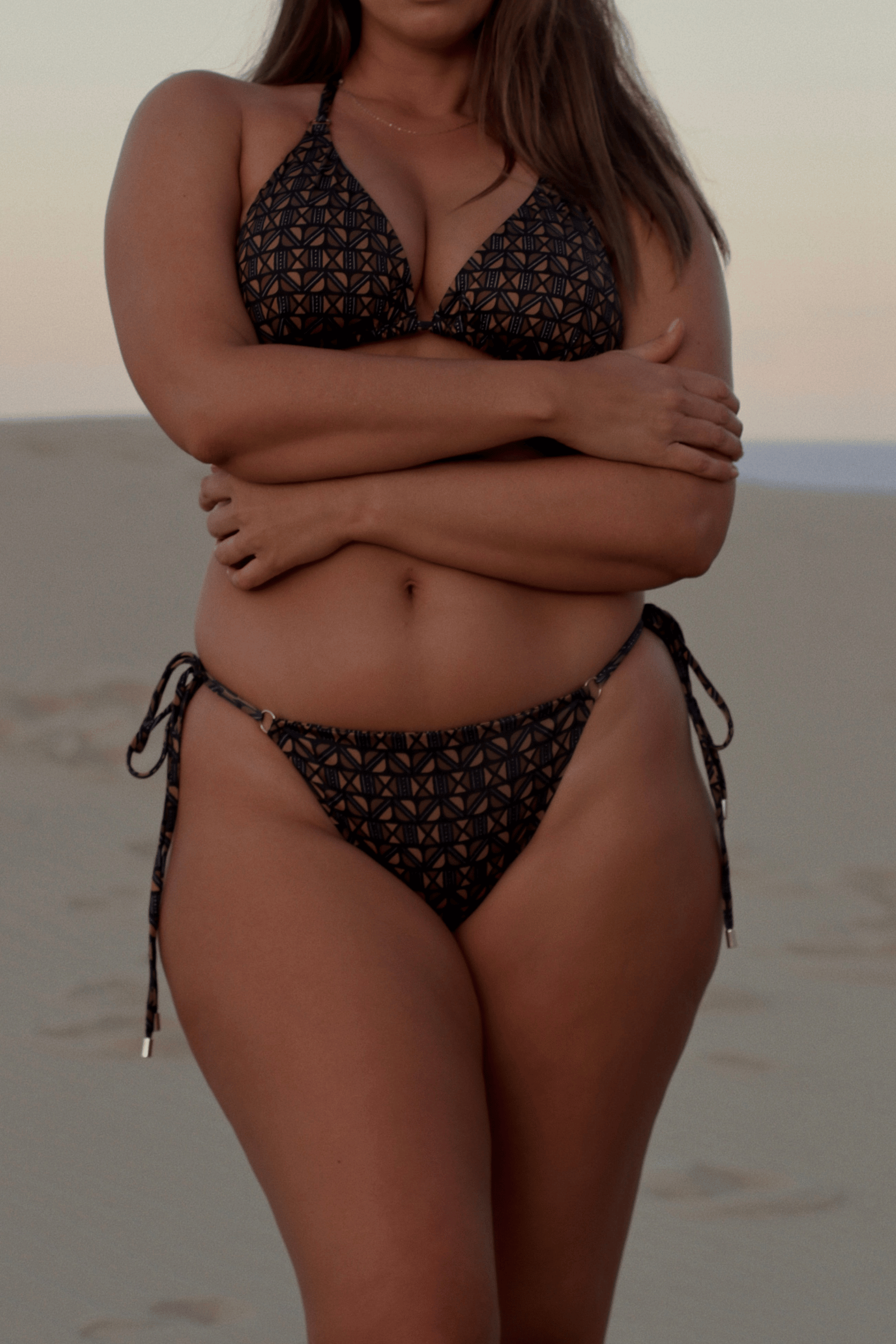 The Luna Bottom is a classic string bikini bottom designed with body confidence in mind. The Luna is our skimpiest bottom yet, featuring gold ring details, adjustable side ties and a cheeky cut back.