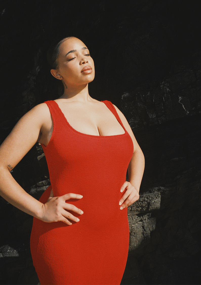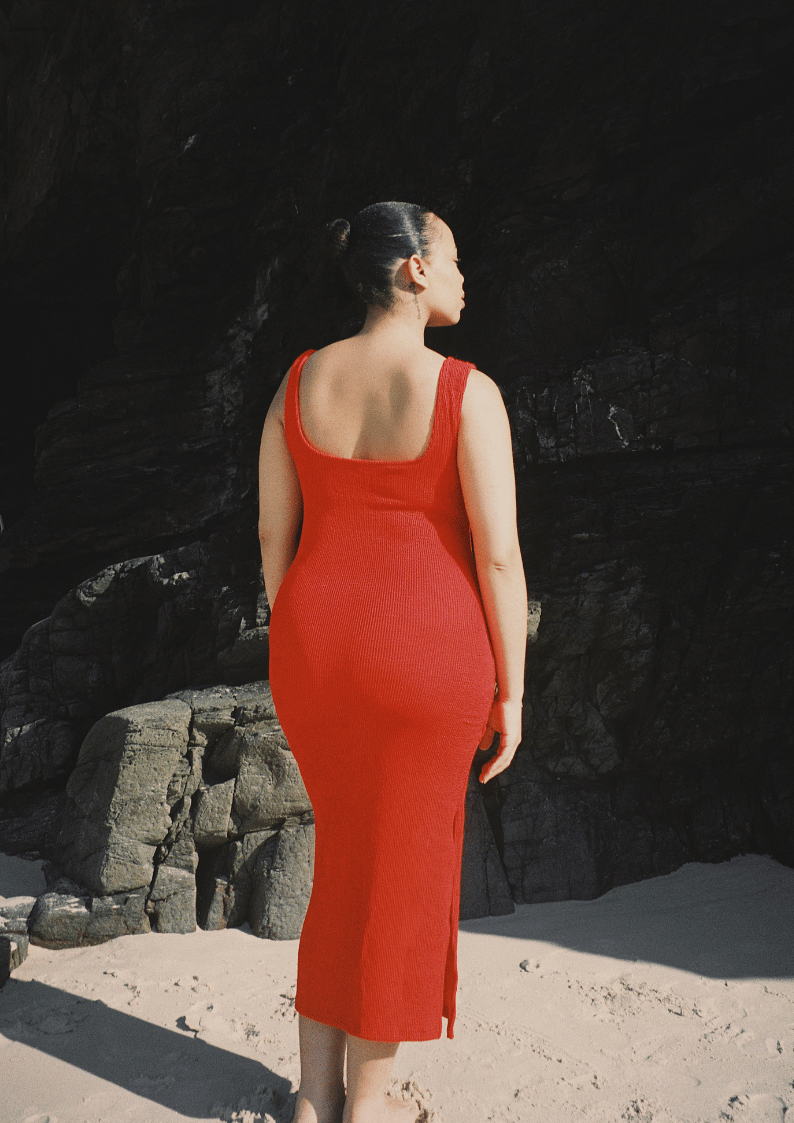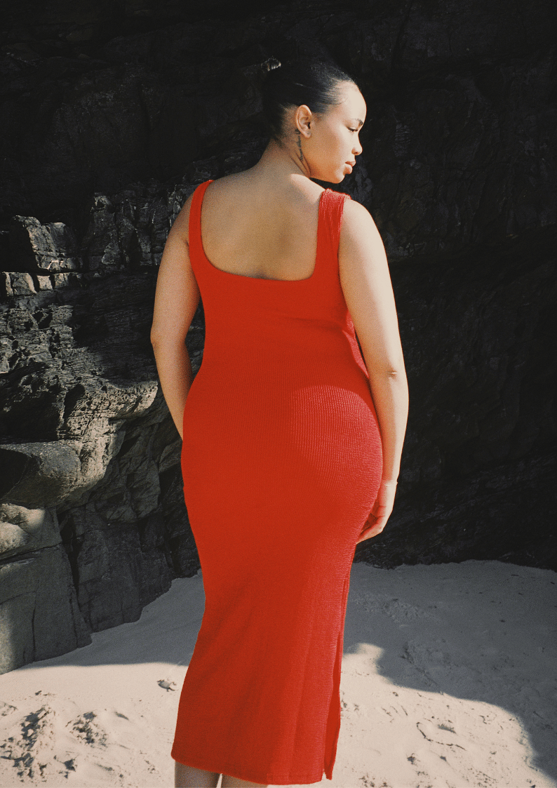 The Solstice midi is a flattering, feminine bodycon dress designed with a square neckline, figure-hugging fit and inbuilt shelf support for braless wear. Made from premium textured 5D fabric, this sleek silhouette comfortably contours curves, perfect for day-to-night styling and beach to bar versatility.