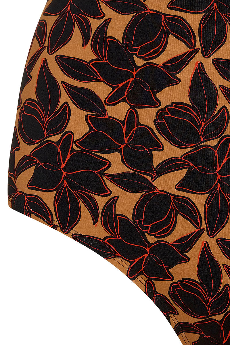 Bokumaia Fior Bottom Noir Hibiscus – high-waisted full coverage floral bikini brief